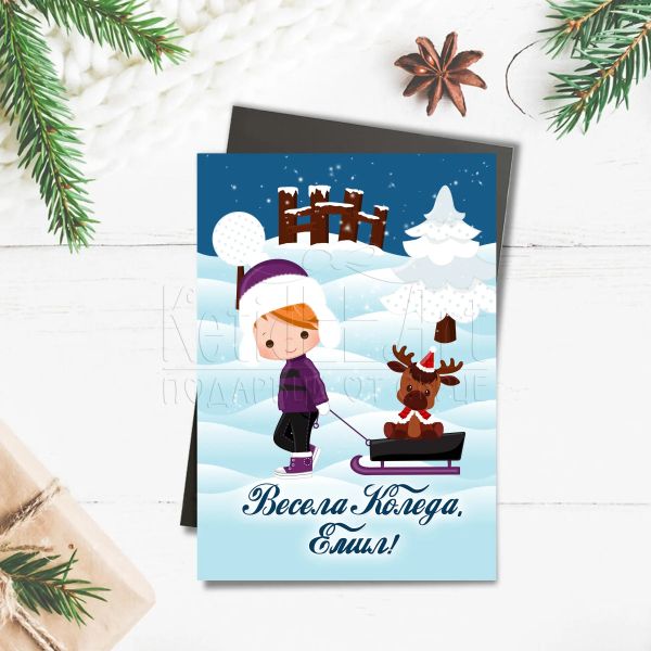 Коледен магнит - Момче с шейна