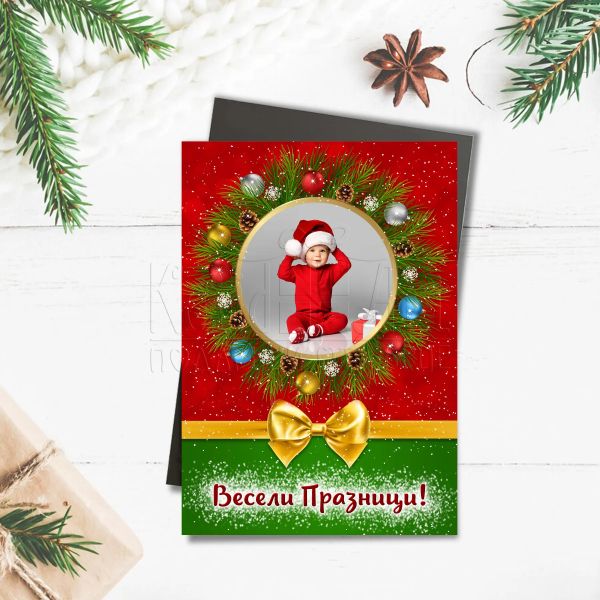 Коледен магнит със снимка - Коледен венец