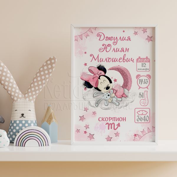 Открийте уникалния начин да запазите най-ценните спомени с нашия постер бебешка визитка с данните на детето. Персонализираният постер е идеален за всяко новородено, представяйки всички важни детайли, които ще направят първите му дни незабравими. Създайте незабравим спомен за вас и вашето бебе!