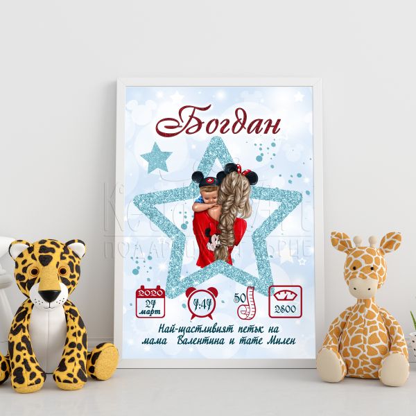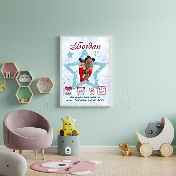 Открийте уникалния начин да запазите най-ценните спомени с нашия постер бебешка визитка с данните на детето. Персонализираният постер е идеален за всяко новородено, представяйки всички важни детайли, които ще направят първите му дни незабравими. Създайте незабравим спомен за вас и вашето бебе!
