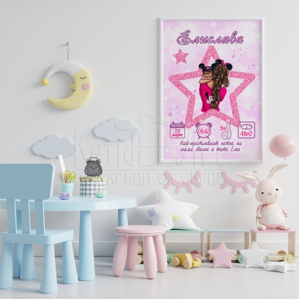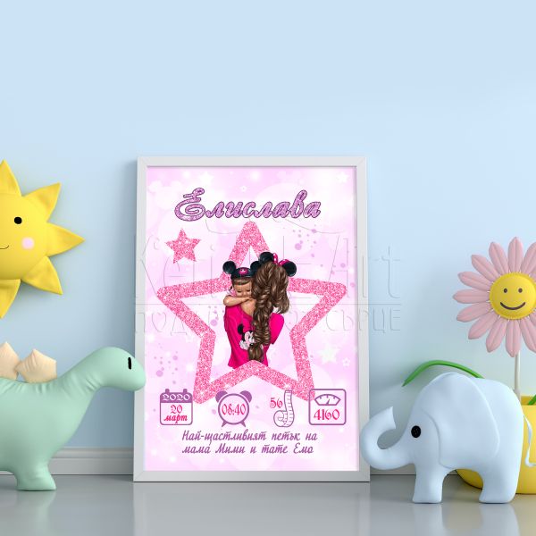 Открийте уникалния начин да запазите най-ценните спомени с нашия постер бебешка визитка с данните на детето. Персонализираният постер е идеален за всяко новородено, представяйки всички важни детайли, които ще направят първите му дни незабравими. Създайте незабравим спомен за вас и вашето бебе!