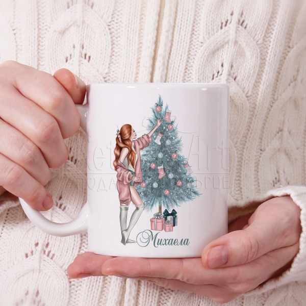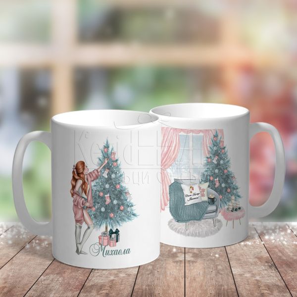 Коледна чаша - Момиче край елхата