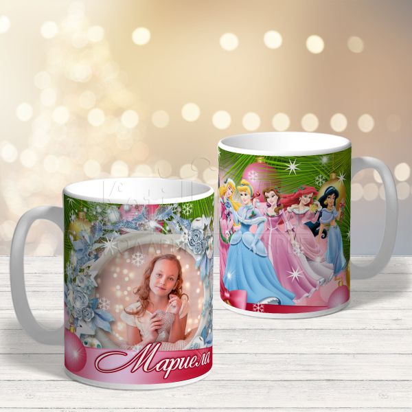 Добавете стил и практичност с нашата персонализирана детска коледна чаша – "Дисни принцеси"!