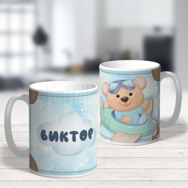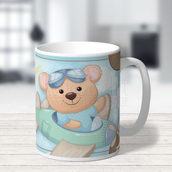 Персонализирана детска чаша - Мече в самолет