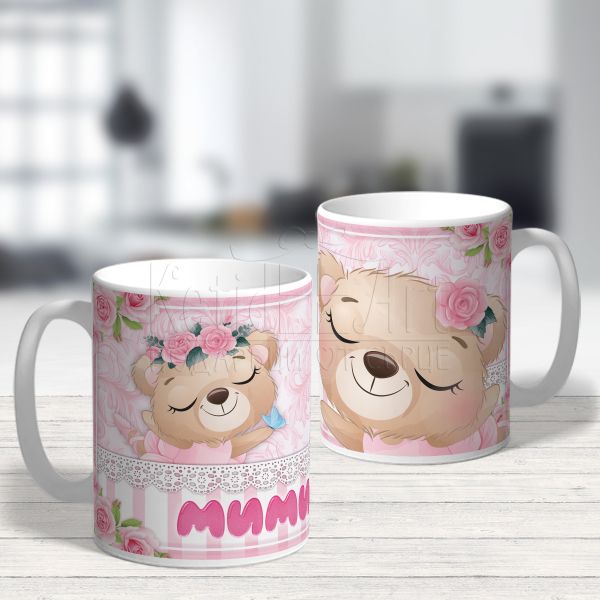 Персонализирана детска чаша - Мече с цвете