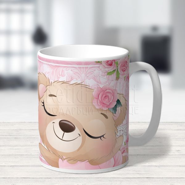 Добавете стил и практичност с нашата персонализирана детска чаша – " Мече с цвете"!