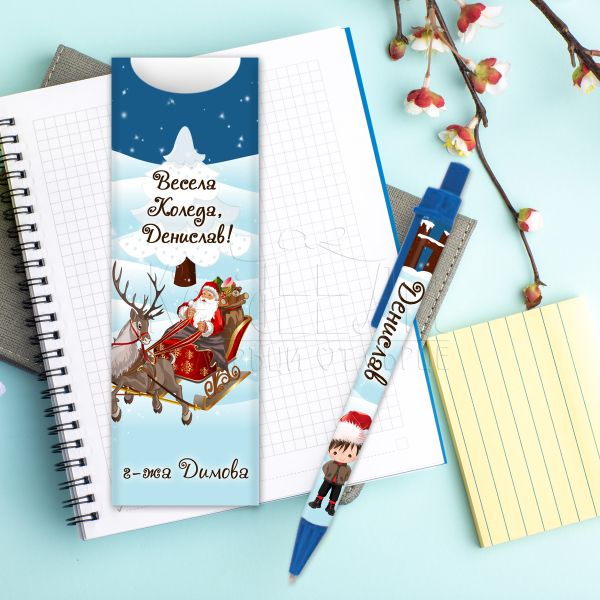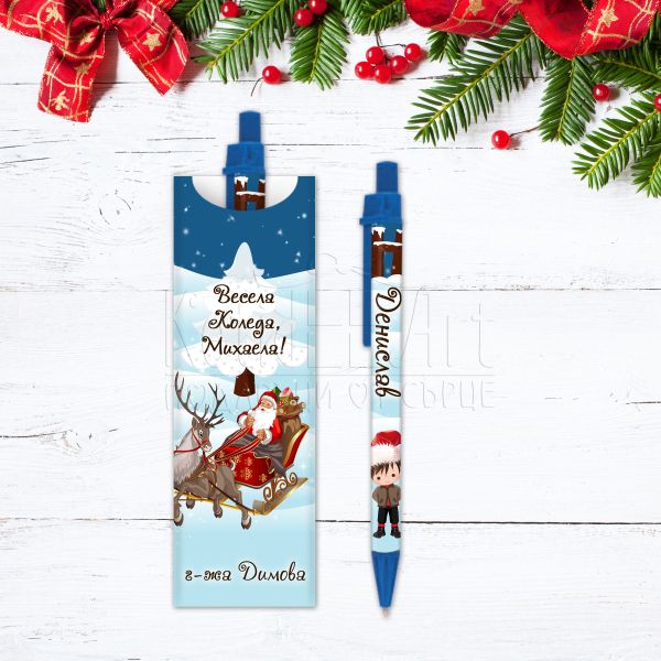 Коледна химикалка с име за момче - Дядо Коледа с шейна