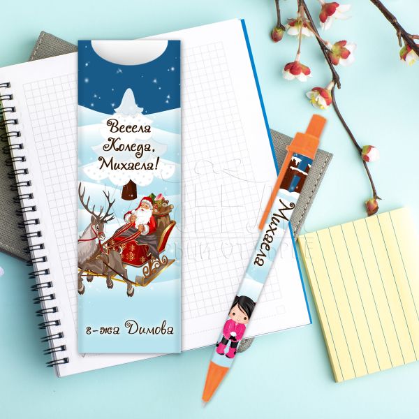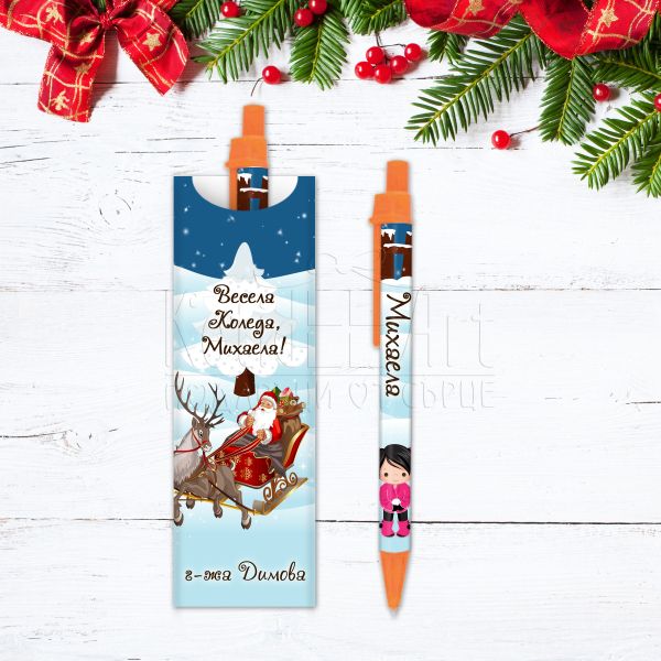 Коледна химикалка с име за момиче - Дядо Коледа с шейна