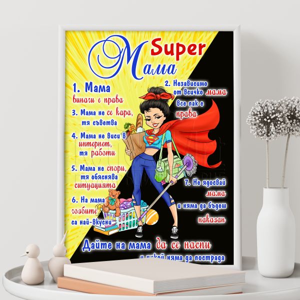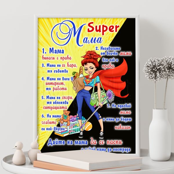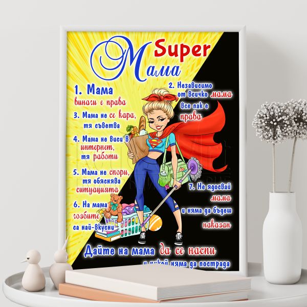 За да създадеш изненада на своята майка, избери нашия чудесен постер "Супер мама". Той е идеален начин да изразиш своята благодарност към нея.