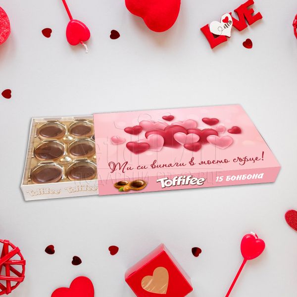 Направете празника по-сладък и специален с тази уникална персонализирана кутия за бонбони Toffifee!