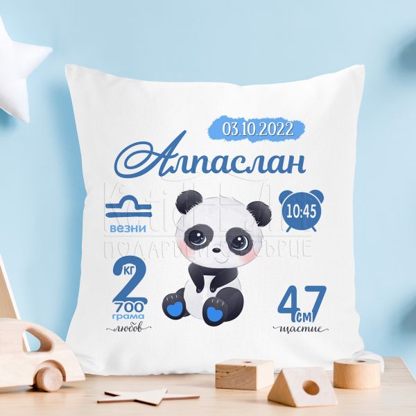 Възглавница бебешка визитка - Панда