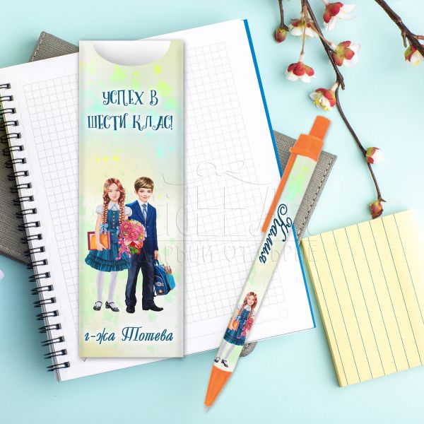 Подарък химикалка с име за момче - Успех в шести клас