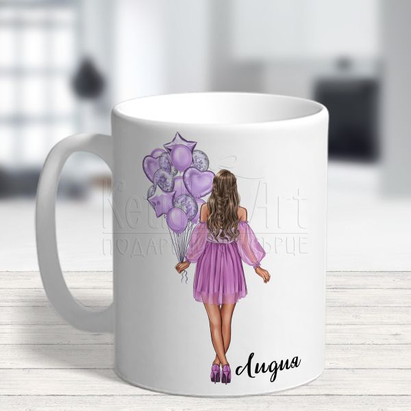 Чаша за рожден ден - Момиче с балони