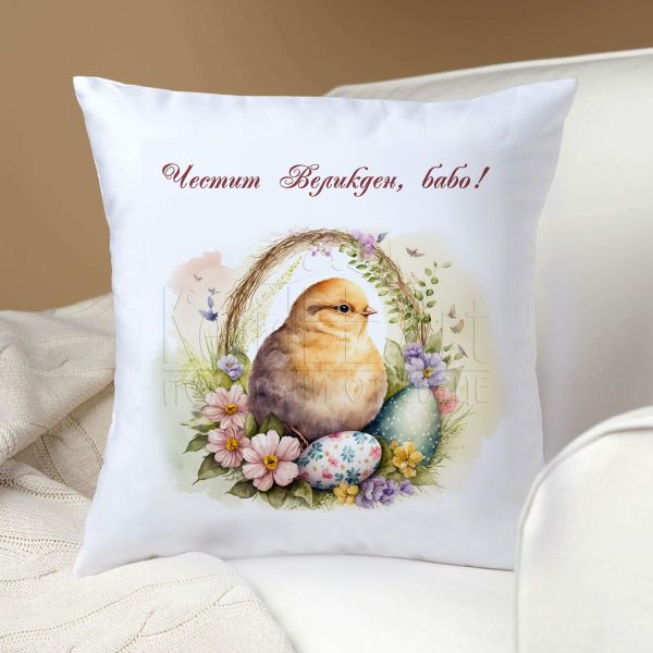 Нашата великденска възглавница е украсена със зашеметяващи мотиви, които вдъхновяват усмивки и радост. Възможността за персонализация с име или послание за Великден добавя уникалност и индивидуалност към всяка възглавница.