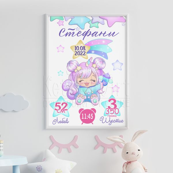 Открийте уникалния начин да запазите най-ценните спомени с нашия постер бебешка визитка с данните на детето. Персонализираният постер е идеален за всяко новородено, представяйки всички важни детайли, които ще направят първите му дни незабравими. Създайте незабравим спомен за вас и вашето бебе!