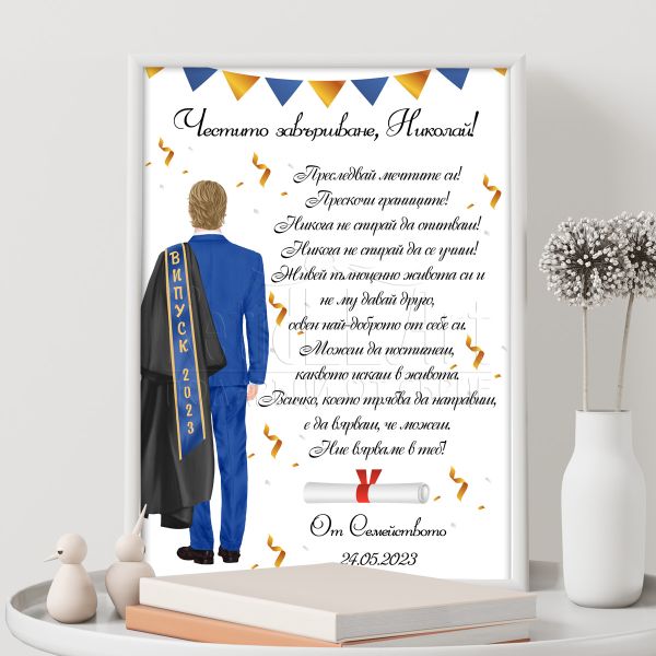Отбележете специалния момент на дипломиране с нашите персонализирани постери - изборът на пътя към успеха, който ще бъде ценен спомен завинаги.