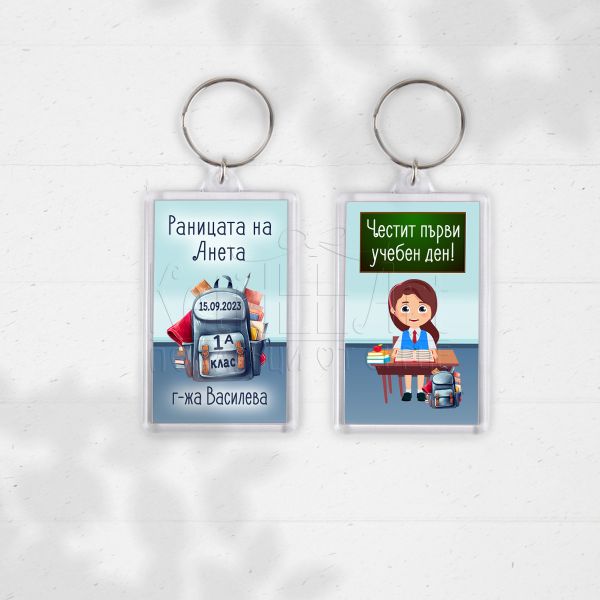 Представяме ви уникален двустранен акрилен ключодържател - идеалният подарък за първокласник, който ще направи първия учебен ден още по-специален и запомнящ се!