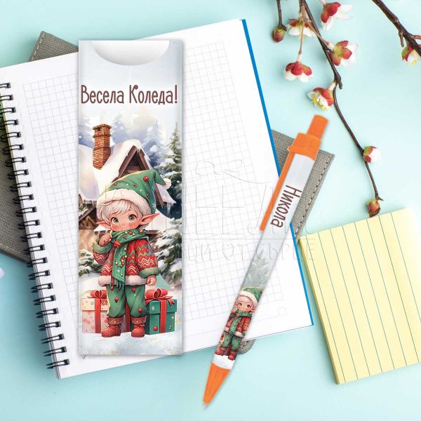 Коледна химикалка с име подарък за ученик - Момче Елф