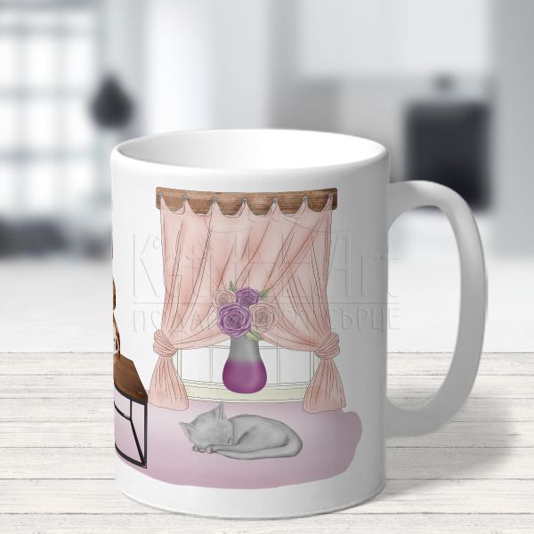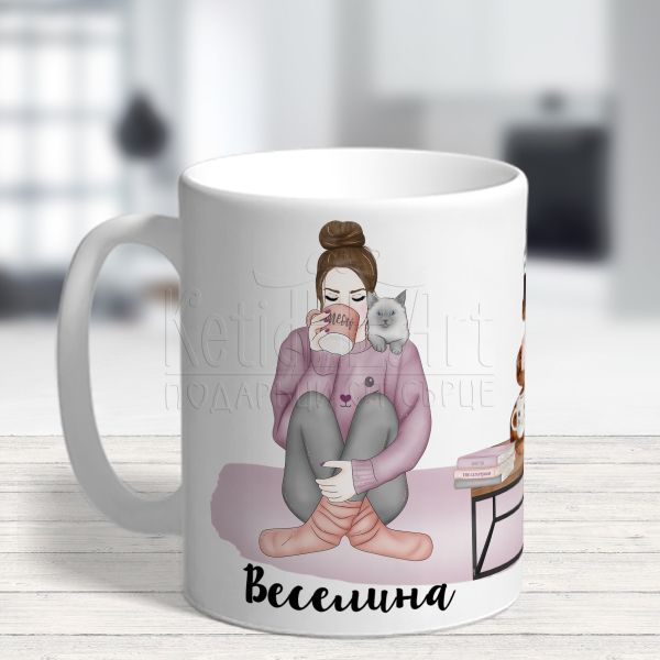 Красиво илюстрираният дизайн прави чашата невероятно уникална. Всяка глътка от нея носи радост и топлина на притежателя. Нейният невероятен дизайн на "Жена с коте", украсена с вашето име или името на ваш близък, я прави уникално лична и неповторима. Всеки ден, когато отпивате глътка кафе или чай, ще се почувствате специални.