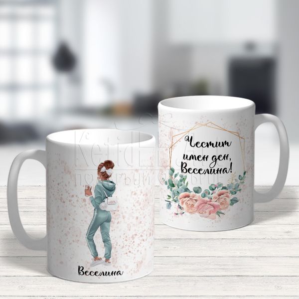Оригинална чаша за имен ден на жена, която носи радост и топлина на притежателя.