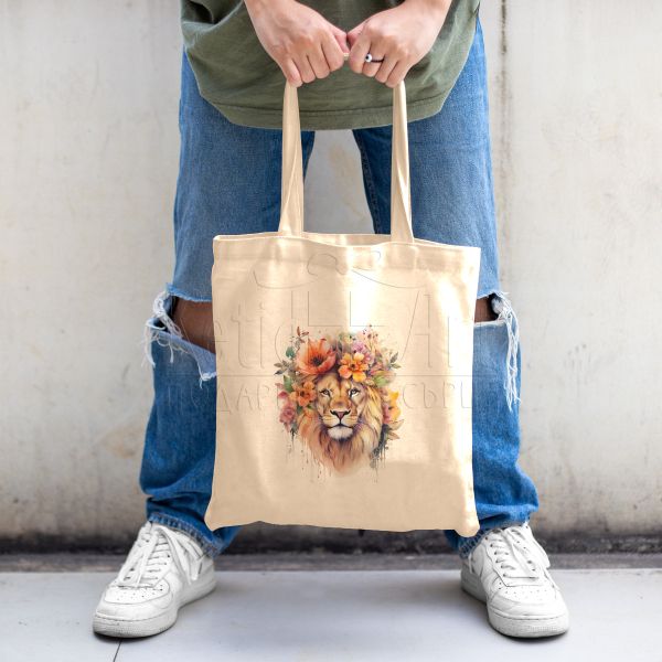Изразете своята индивидуалност с нашата текстилна чанта "Лъв с цветя"! Станете по-различни, по-оригинални! Поднесете нещо специално на ваш близък!