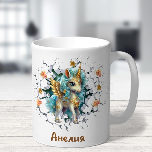 Красиво илюстрираният 3D дизайн на еднорог прави чашата невероятно уникална. Всяка глътка от нея носи радост и топлина на притежателя. Нейният невероятен дизайн украсена с името на вашето дете или името на ваш близък, я прави уникално лична и неповторима. Всеки ден, когато отпива глътка мляко или какао, ще се почувствате специално.