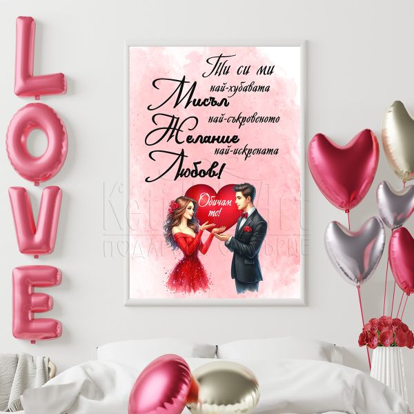 За да създадеш незабравима атмосфера на любов и романтика в своя дом, избери нашия чудесен постер с пожелание за Свети Валентин. Този постер е идеален начин да изразиш своите чувства към любимия човек.