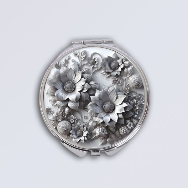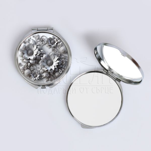 Дамско джобно огледало - Сребърни цветя