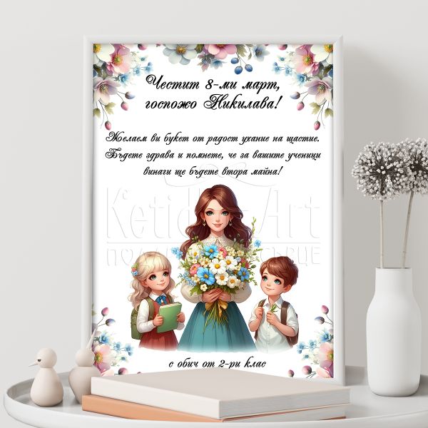 Дизайн: Нашият постер "Букет от радост" съчетава благодарност и признание към вашата учителка.