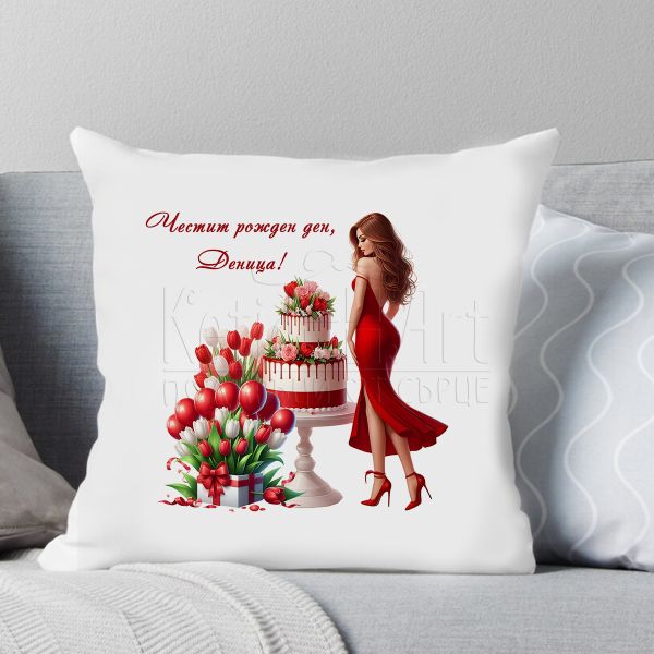 Възглавница с надпис - Честит рожден ден с име