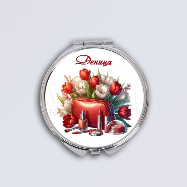 Нашето джобно дамско огледало е идеалният аксесоар за всяка стилна жена, която обича да изглежда перфектно през целия ден. Това компактно и елегантно огледало е не само функционално, но и стилно допълнение към вашата дамска чанта. С възможността за персонализация, то се превръща в уникален и запомнящ се подарък за всякакъв повод.