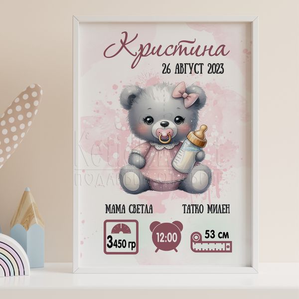 Бебешка визитка за момиче - Мече