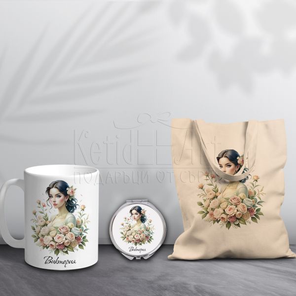 Подаръчен комплект от три части - Жена с рози