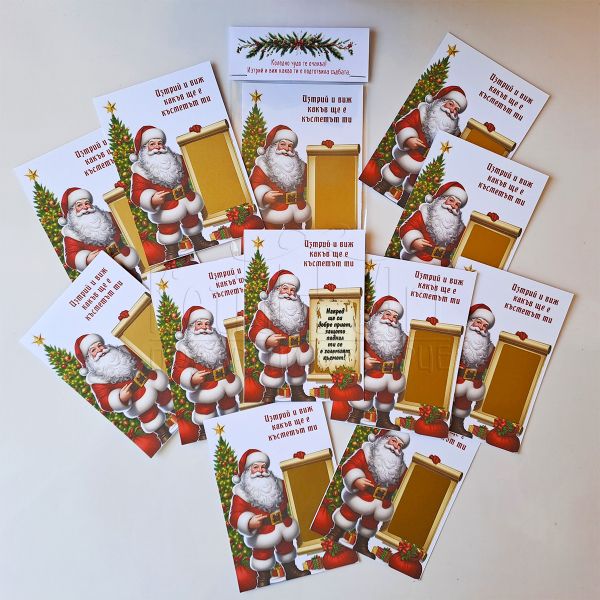 Коледните късмети са перфектният начин да добавите малко магия и изненада към празничния сезон. Всеки късмет е внимателно изработен и съдържа специално послание, което се разкрива след изтриване. Те са идеални за коледни партита, семейни събирания или просто за да зарадвате някого специален.