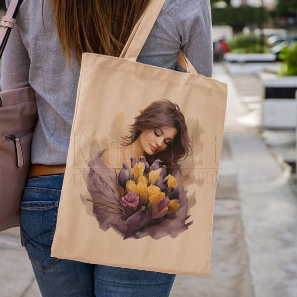 Всяка торбичка е уникална и изработена от мек и устойчив полиестер с размери 38 см в ширина и 42 см в дължина, с дълги подсилени дръжки от 70 см.