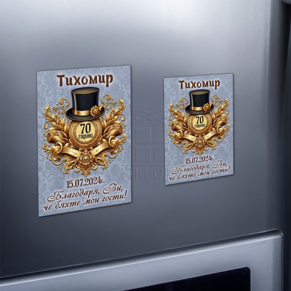 Магнитите за юбилей са изработени с внимание към детайлите, съчетавайки елегантност и красота. Със своите живописни цветове и високо качество на печат, те са идеалният подарък за гостите на юбилея. Вие имате възможност да персонализирате магнита с име, дата и специално послание, което ще направи този спомен наистина уникален.