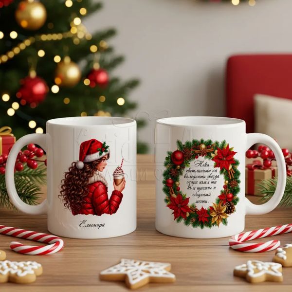 Коледна чаша с персонално послание за жена