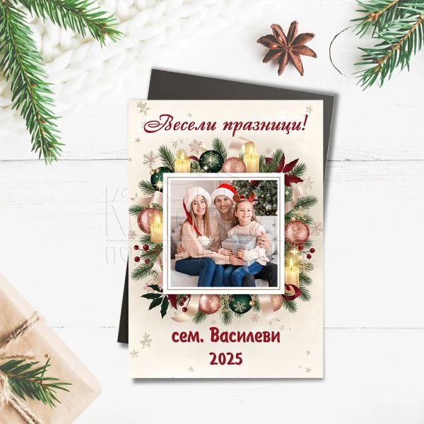 Дизайнът носи леко коледно настроение с премерени цветове и илюстрации, които създават усещане за уют, без да отвличат вниманието. Семпъл, но със собствен характер, този магнит добавя фин акцент към всяко пространство.